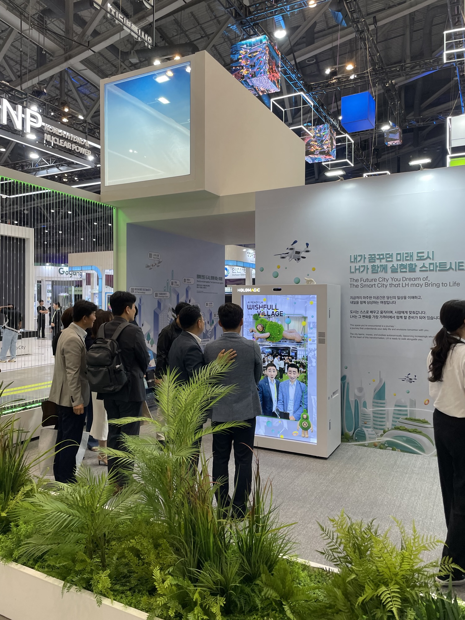 지난 2025년 월드스마트시티엑스포 at Busan에서 LH공사에서 저희 Holomagic.AI를 활용하여 방문객들에게 스마트한 미래도시에 대해서 설명하였습니다. 홀로그램기술과 AI즉석 포토 변환 서비스로 많은 분들의 발길을 멈추게 하였습니다.