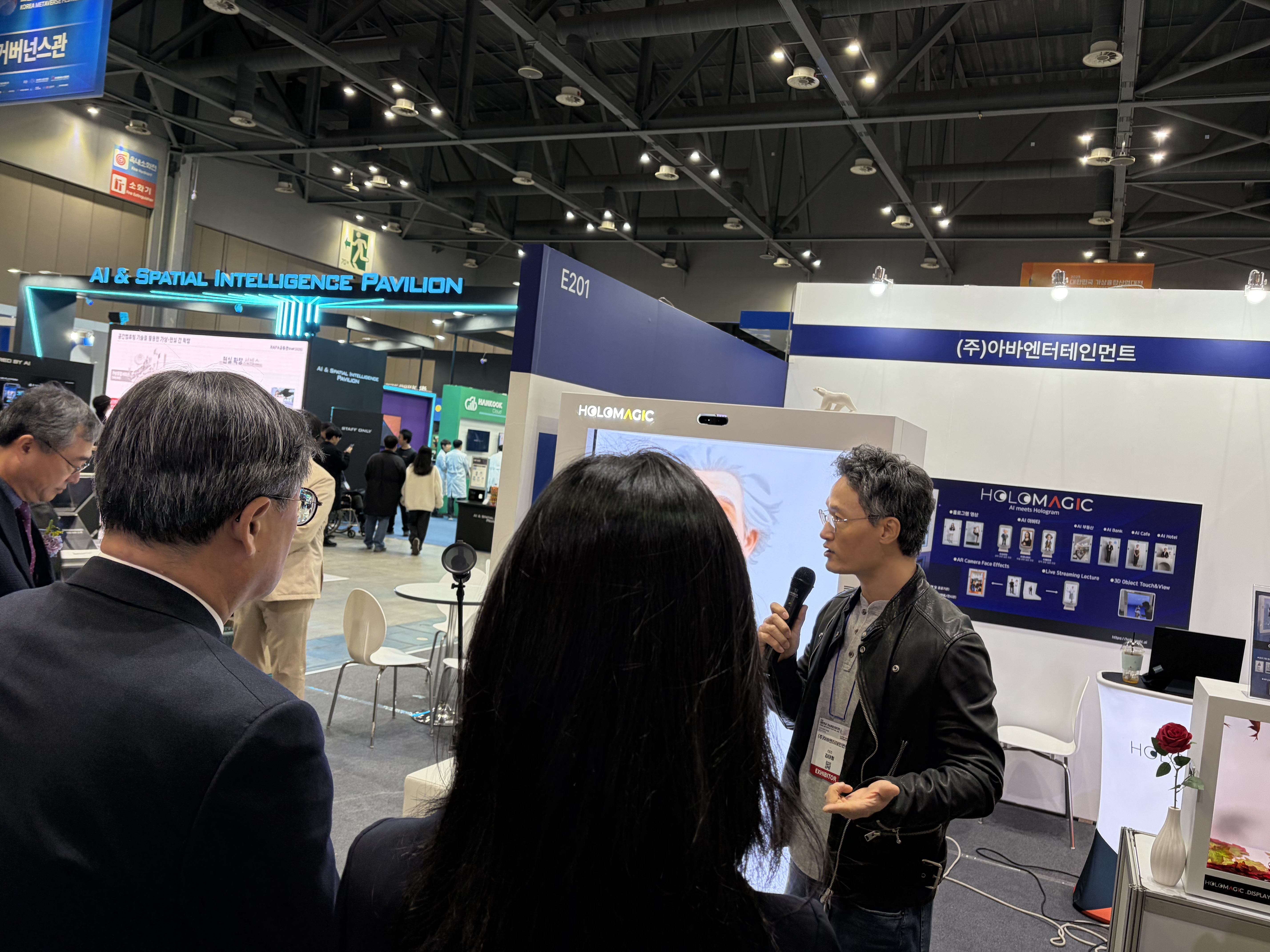 저희 Holomagic.AI가 대한민국 가상유합대전 (11월 12일~14일)까지 일산 킨텍스 전시관에 초청받아 참석했습니다. 이번 전시회는 특별히 원광대 홀로그램연구소와 함께 하여 더욱 의미 있는 자리였고, 특별히 과학기술정통부에서도 저희 Holomagic.AI의 실시간 AI챗봇 아바타를 시연해 보여서 더더욱 뜻깊은 자리였습니다. 또한, Holomagic.AI의 여러 성공 사례를 발표할 수 있는 뜻깊은 자리였습니다. 저희 Holomagic.AI의 챗봇 기술은 한단계 업그레이드 되어서 또 새로움을 선보일 예정입니다. AI챗봇 에이전트 선두기업! Holomagic.AI!