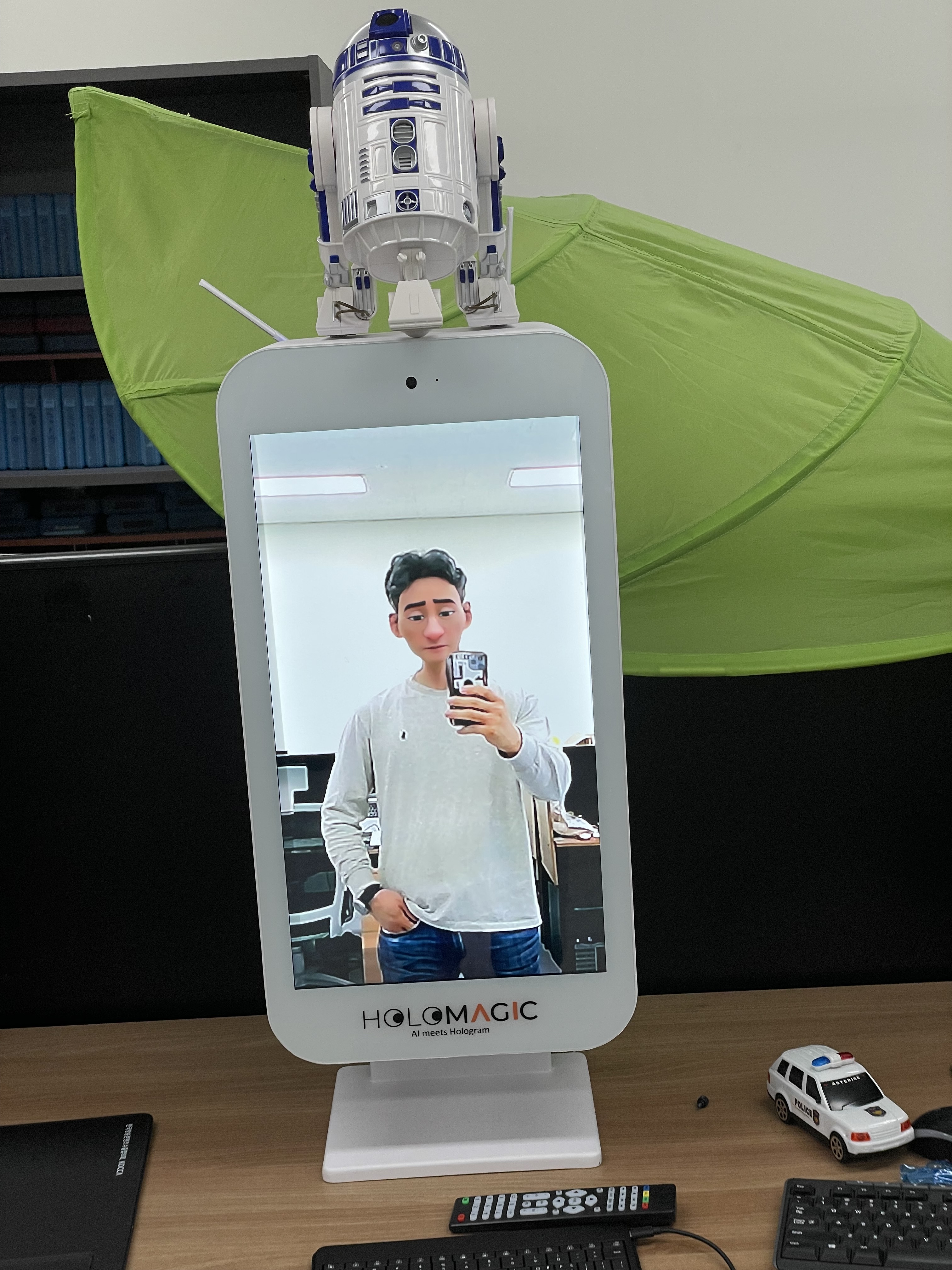 홀로매직 박스는 최첨단 투명 LCD 패널을 활용하여 투영되는 영상을 마치 박스안에 있는 홀로그램 효과를 느끼게 하는 디스플레이 입니다. 소형 사이즈(21.5인치)와 대형 사이즈(75인치)가 있습니다.