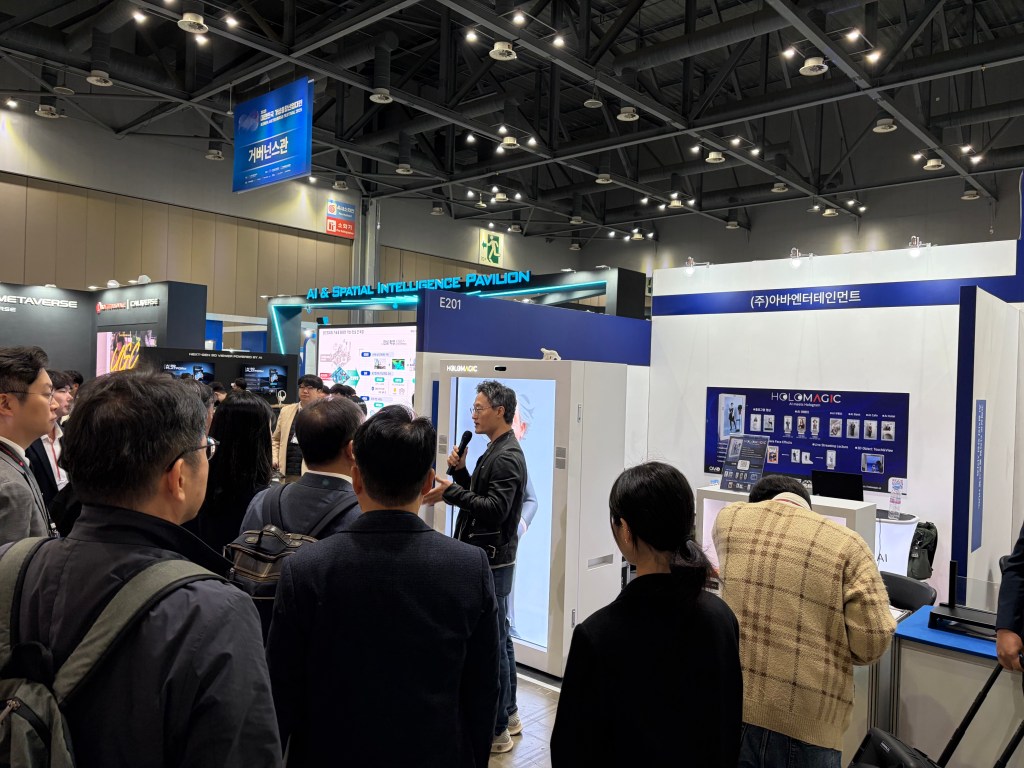 저희 Holomagic.AI가 대한민국 가상유합대전 (11월 12일~14일)까지 일산 킨텍스 전시관에 초청받아 참석했습니다. 이번 전시회는 특별히 원광대 홀로그램연구소와 함께 하여 더욱 의미 있는 자리였고, 특별히 과학기술정통부에서도 저희 Holomagic.AI의 실시간 AI챗봇 아바타를 시연해 보여서 더더욱 뜻깊은 자리였습니다. 또한, Holomagic.AI의 여러 성공 사례를 발표할 수 있는 뜻깊은 자리였습니다. 저희 Holomagic.AI의 챗봇 기술은 한단계 업그레이드 되어서 또 새로움을 선보일 예정입니다.
